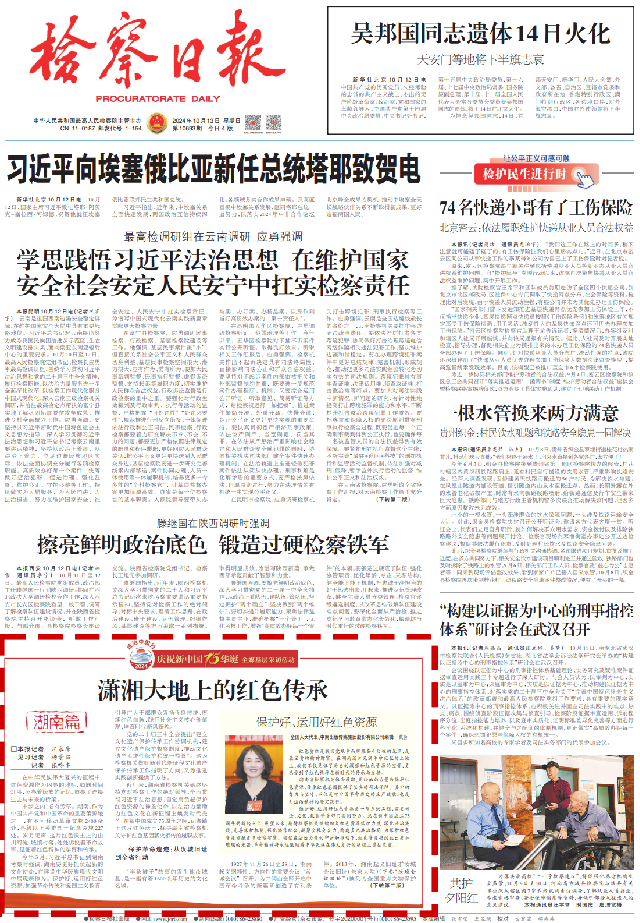 今年3月,习近平总书记到湖南考察时强调,湖南要更好担负起新的文化使命,在建设中华民族现代文明中展现新作为。保护好、运用好红色资源,加强革命传统和爱国主义教育,引导广大干部群众发扬优良传统、赓续红色血脉,践行社会主义核心价值观,培育时代新风新貌。党的二十届三中全会提出“建立文化遗产保护传承工作协调机构,建立文化遗产保护督察制度,推动文化遗产系统性保护和统一监管”。这为检察机关做好新时代新征程文化遗产保护传承工作指明了方向,又为推进实践创新提供了方法。近年来,湖南省检察机关始终坚持党对检察工作的绝对领导,全面贯彻习近平法治思想,自觉肩负起保护红色资源的神圣使命,以法治力量助力红色文化在新征程上焕发时代光芒。在新中国成立75周年之际,记者踏上这片红色沃土,探寻湖南省检察机关守护红色基因薪火相传的履职故事。